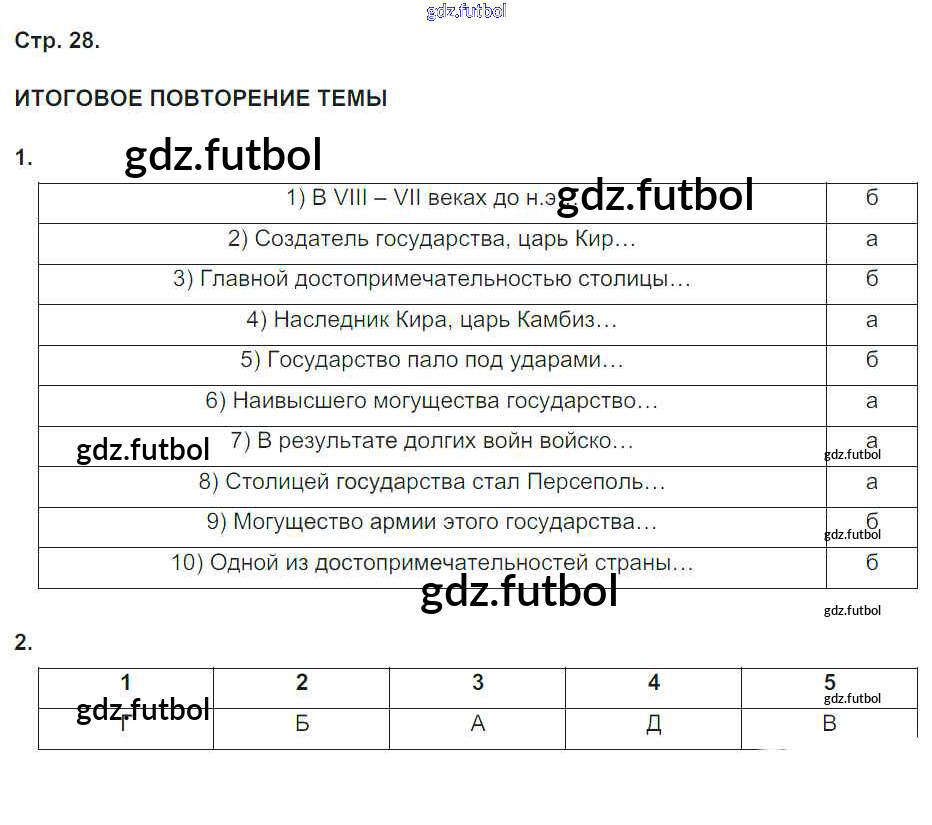 Готовые домашние задания по Истории за 5 класс Абрамов Рабочая тетрадь Вертикаль 2019 ФГОС - Тема 3. Древнейшие государства передней Азии стр. 28