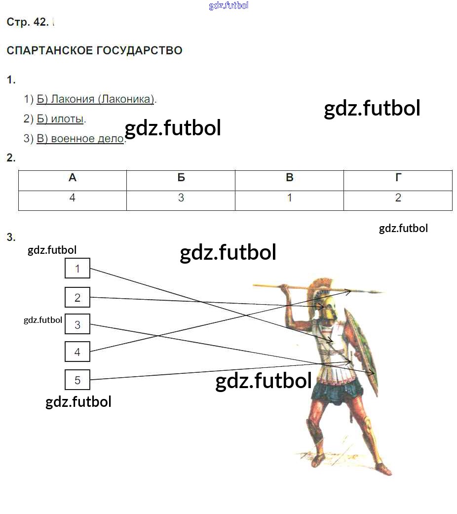 Готовые домашние задания по Истории за 5 класс Абрамов Рабочая тетрадь Вертикаль 2019 ФГОС - Тема 5. Жители и государства Древней Греции стр. 42