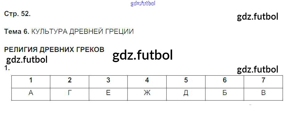 Готовые домашние задания по Истории за 5 класс Абрамов Рабочая тетрадь Вертикаль 2019 ФГОС - Тема 6. Культура Древней Греции стр. 52