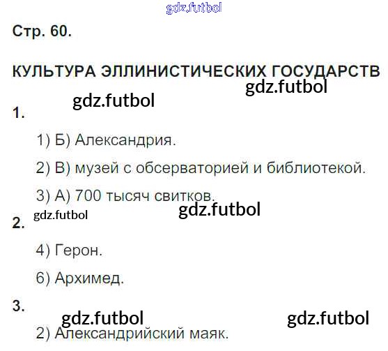 Готовые домашние задания по Истории за 5 класс Абрамов Рабочая тетрадь Вертикаль 2019 ФГОС - Тема 7. Создание державы Александра Македонского. Эпоха эллинизма стр. 60