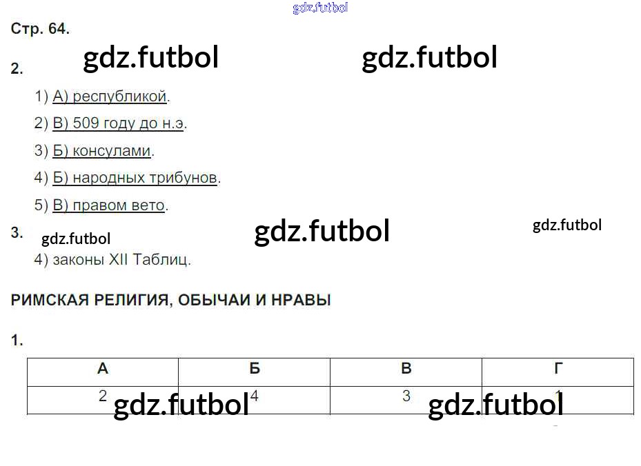Готовые домашние задания по Истории за 5 класс Абрамов Рабочая тетрадь Вертикаль 2019 ФГОС - Тема 8. Рим покоряет Италию стр. 64