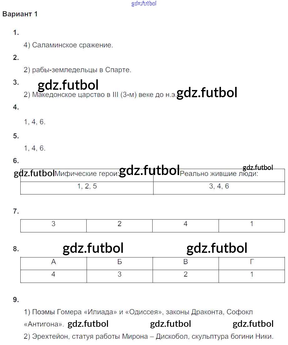 Готовые домашние задания по Истории за 5 класс Крючкова Проверочные и контрольные работы 2015 ФГОС - Итоговая контрольная работа по теме Древняя Греция Вариант №1