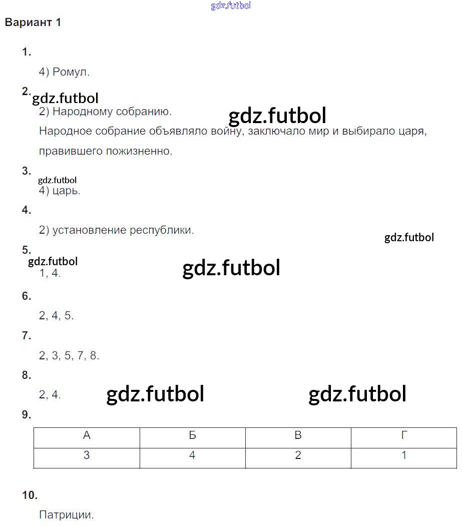 Готовые решения задач (ГДЗ) по Истории пятый класс Крючкова Проверочные и контрольные работы 2015 ФГОС - Проверочная работа-1 Глава-11. Рим: от его возникновения до установления господства над Италией Вариант №1 доступны для различных учебных материалов. У нас вы сможете найти авторские решения для всех пособий, предназначенных для школьников. Не секрет, что в настоящее время многие школьники прибегают к использованию готовых решебников, ведь они содержат подробные ответы для каждого упражнения, представленного в учебнике.