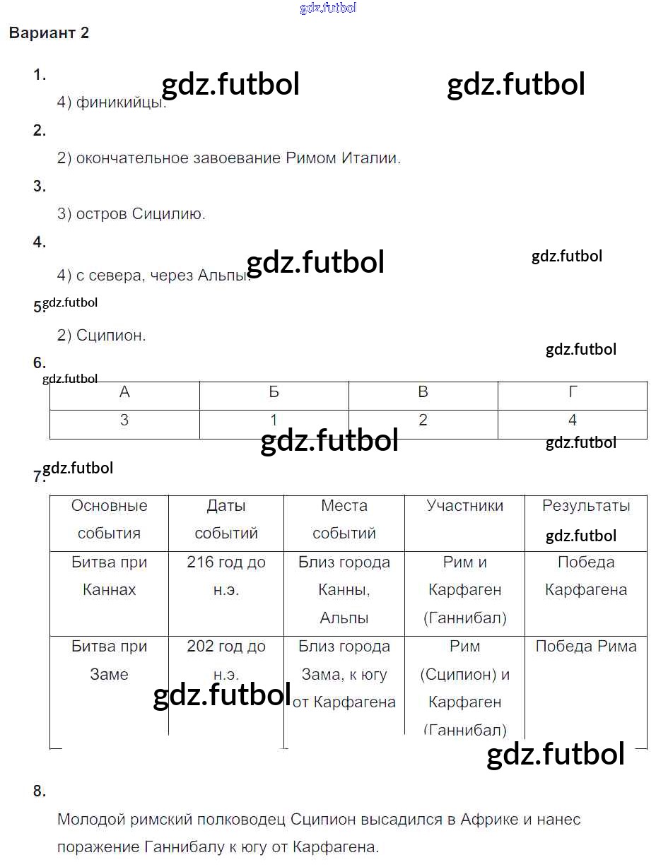 Готовые домашние задания по Истории за 5 класс Крючкова Проверочные и контрольные работы   2015 ФГОС - Проверочная работа-1 Вариант №2