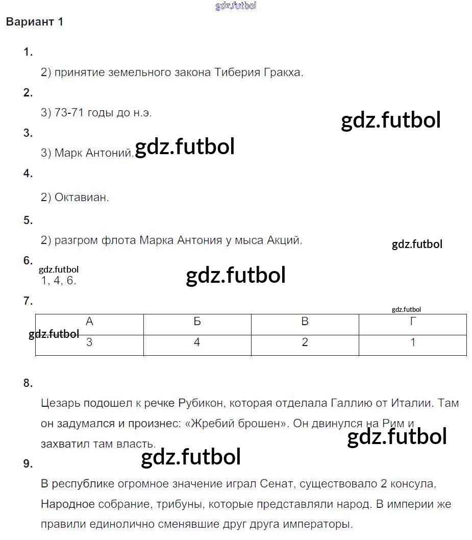 Готовые домашние задания по Истории за 5 класс Крючкова Проверочные и контрольные работы 2015 ФГОС - Итоговая контрольная работа к главе Гражданские войны в Риме Вариант №1