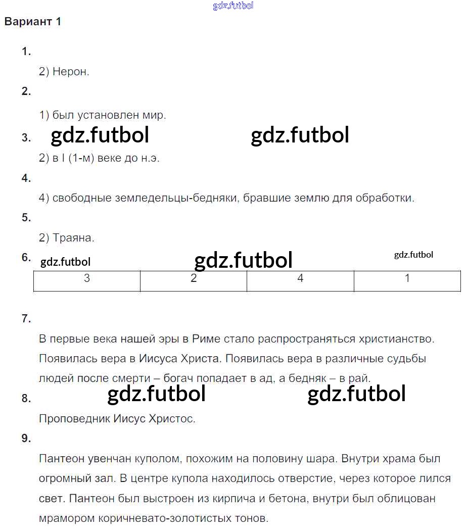 Готовые домашние задания по Истории за 5 класс Крючкова Проверочные и контрольные работы 2015 ФГОС - Итоговая контрольная работа к главе Римская империя в первые века нашей эры Вариант №1