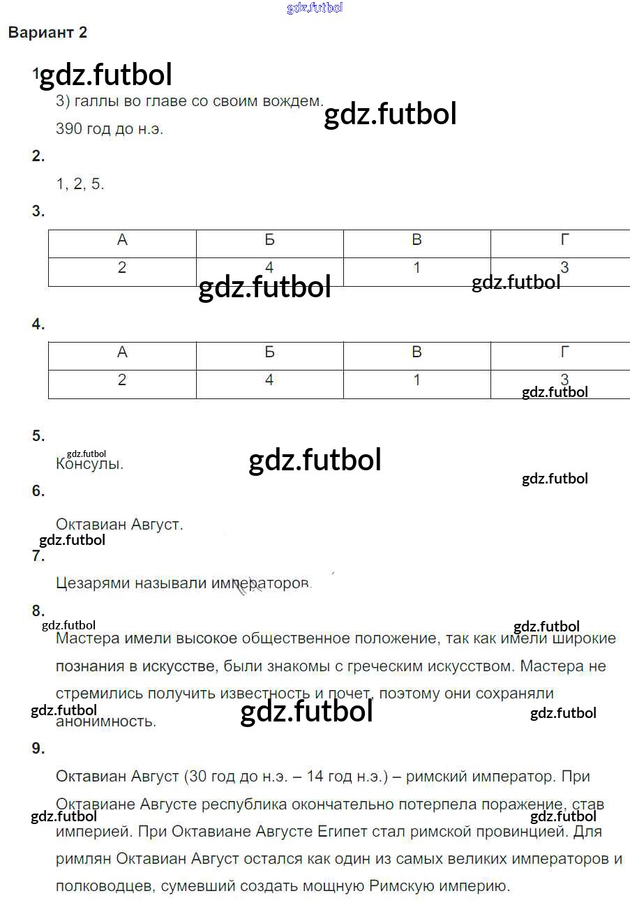 Готовые домашние задания по Истории за 5 класс Крючкова Проверочные и контрольные работы 2015 ФГОС - Итоговая контрольная работа по теме Древний Рим Вариант №2