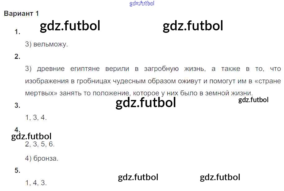 Готовые домашние задания по Истории за 5 класс Крючкова Проверочные и контрольные работы 2015 ФГОС - Проверочная работа-2 Вариант №1