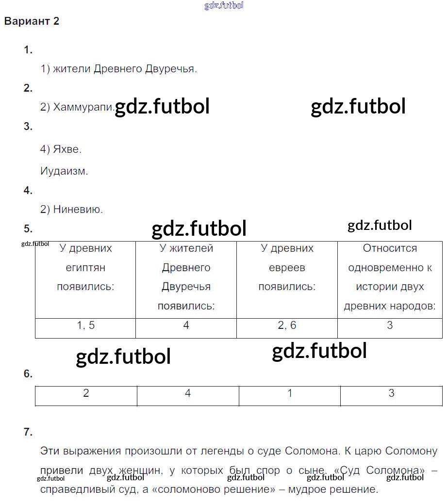 Готовые домашние задания по Истории за 5 класс Крючкова Проверочные и контрольные работы 2015 ФГОС - Итоговая контрольная работа к главе Западная Азия в древности Вариант №2