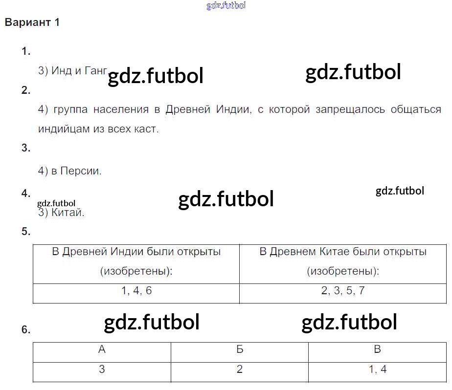 Готовые домашние задания по Истории за 5 класс Крючкова Проверочные и контрольные работы 2015 ФГОС - Итоговая контрольная работа к главе Индия и Китай в древности Вариант №1