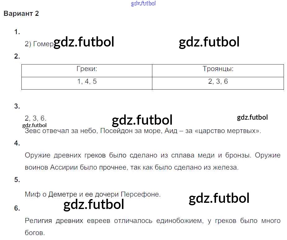 Готовые домашние задания по Истории за 5 класс Крючкова Проверочные и контрольные работы 2015 ФГОС - Проверочная работа-№2 Вариант №2