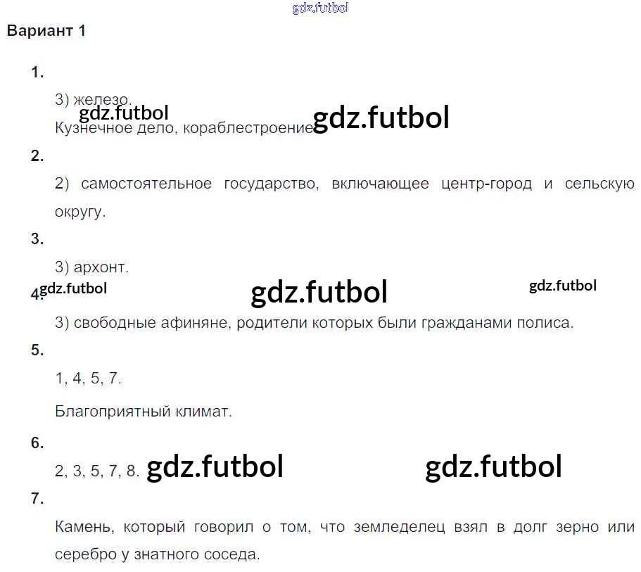 Готовые решения задач (ГДЗ) по Истории пятый класс Крючкова Проверочные и контрольные работы 2015 ФГОС - Проверочная работа-1 Глава-8. Полисы Греции и их борьба с персидским нашествием Вариант №1 доступны для различных учебных материалов. У нас вы сможете найти авторские решения для всех пособий, предназначенных для школьников. Не секрет, что в настоящее время многие школьники прибегают к использованию готовых решебников, ведь они содержат подробные ответы для каждого упражнения, представленного в учебнике.