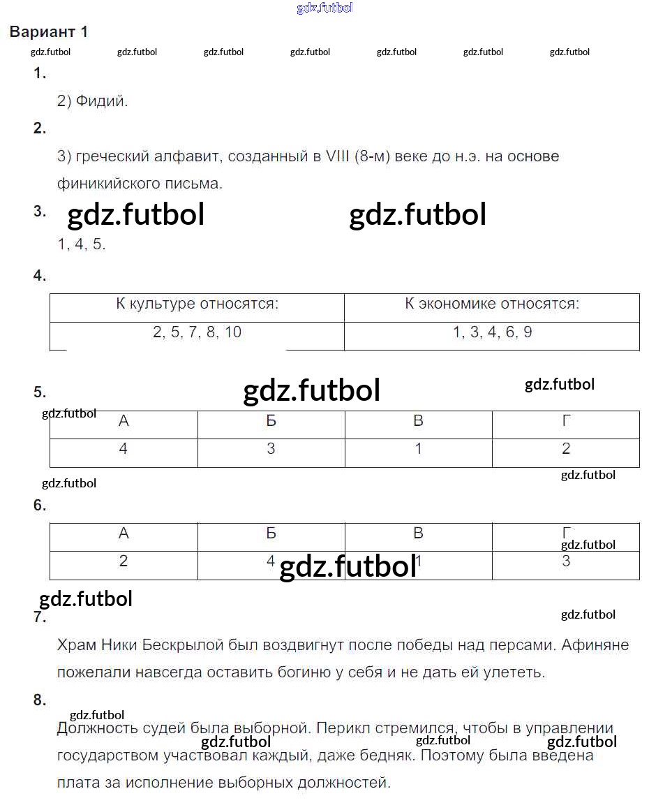 Готовые домашние задания по Истории за 5 класс Крючкова Проверочные и контрольные работы 2015 ФГОС - Итоговая контрольная работа к главе Возвышение Афин в V веке до н. э. Вариант №1