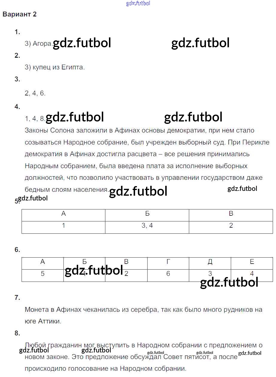 Готовые домашние задания по Истории за 5 класс Крючкова Проверочные и контрольные работы 2015 ФГОС - Итоговая контрольная работа к главе Возвышение Афин в V веке до н. э. Вариант №2