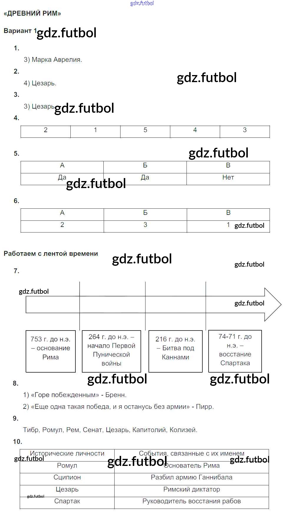 Готовые домашние задания по Истории за 5 класс Саплина Тематический контроль 2016 ФГОС - КР-1. Древний Рим вариант №1