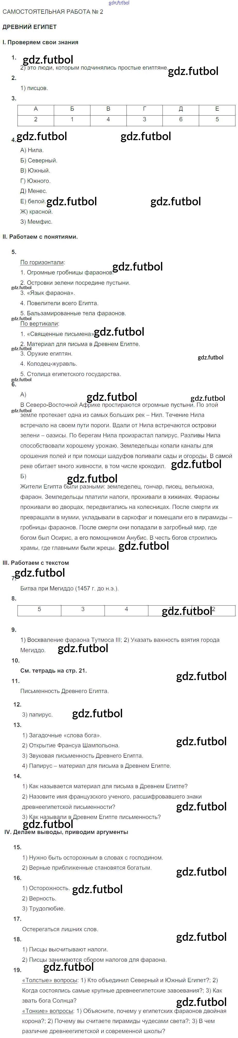 Готовые домашние задания по Истории за 5 класс Саплина Тематический контроль 2016 ФГОС - Самостоятельные работы СР №2. Древний Египет