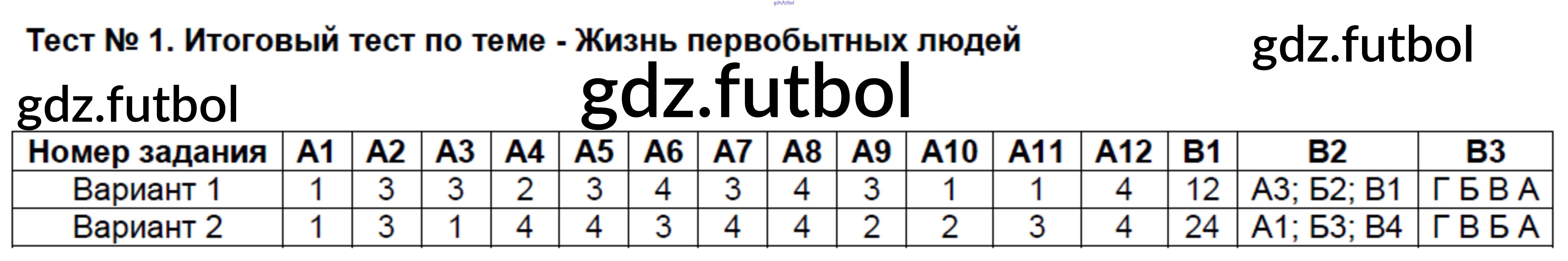 Готовые домашние задания по Истории за 5 класс Волкова Контрольно-измерительные материалы (КИМ) 2017 ФГОС - Тесты Тест №1. Итоговый тест по теме - Жизнь первобытных людей