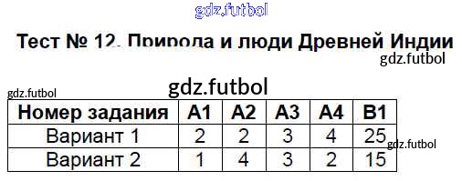 Готовые домашние задания по Истории за 5 класс Волкова Контрольно-измерительные материалы (КИМ) 2017 ФГОС - Тесты Тест №12. Природа и люди Древней Индии