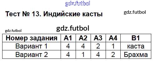 Готовые домашние задания по Истории за 5 класс Волкова Контрольно-измерительные материалы (КИМ) 2017 ФГОС - Тесты Тест №13. Индийские касты