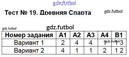 Готовые домашние задания по Истории за 5 класс Волкова Контрольно-измерительные материалы (КИМ) 2017 ФГОС - Тесты Тест №19. Древняя Спарта