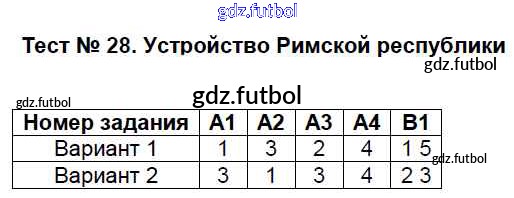 Готовые домашние задания по Истории за 5 класс Волкова Контрольно-измерительные материалы (КИМ) 2017 ФГОС - Тесты Тест №28. Устройство Римской республики