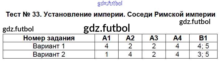 Готовые домашние задания по Истории за 5 класс Волкова Контрольно-измерительные материалы (КИМ) 2017 ФГОС - Тесты Тест №33. Установление империи. Соседи Римской империи