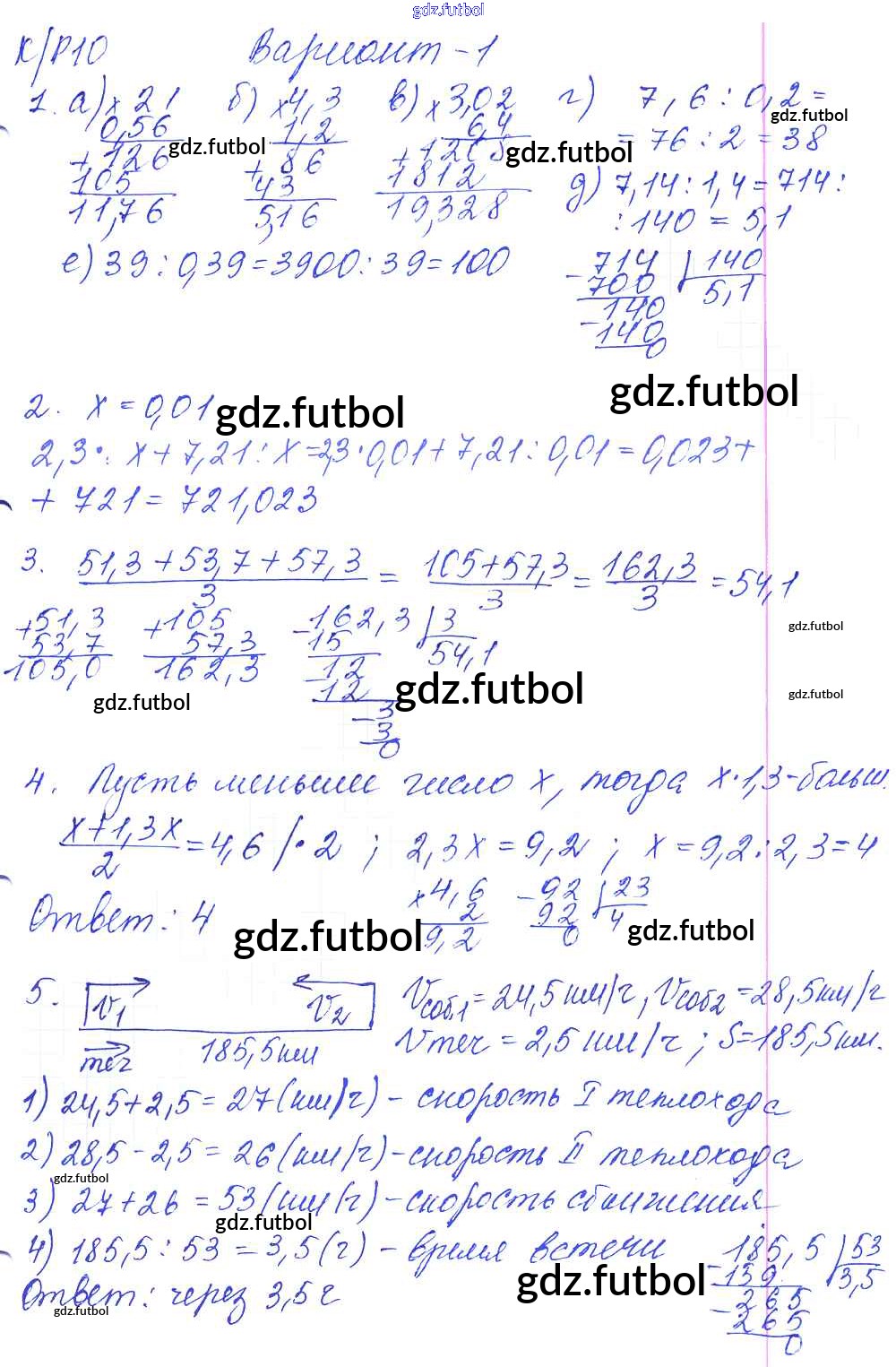Готовые домашние задания по Математике за 5 класс Дудницын Контрольные работы УМК 2011 ФГОС - КР-10. Варианты 1