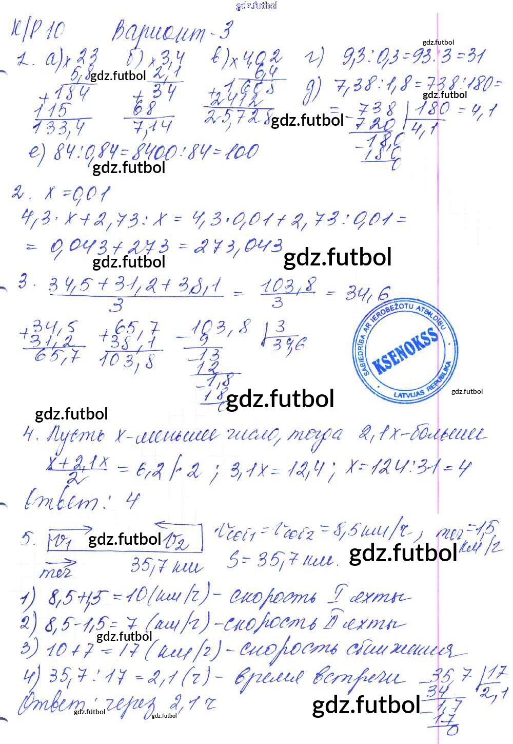 Готовые домашние задания по Математике за 5 класс Дудницын Контрольные работы УМК 2011 ФГОС - КР-10. Варианты 3