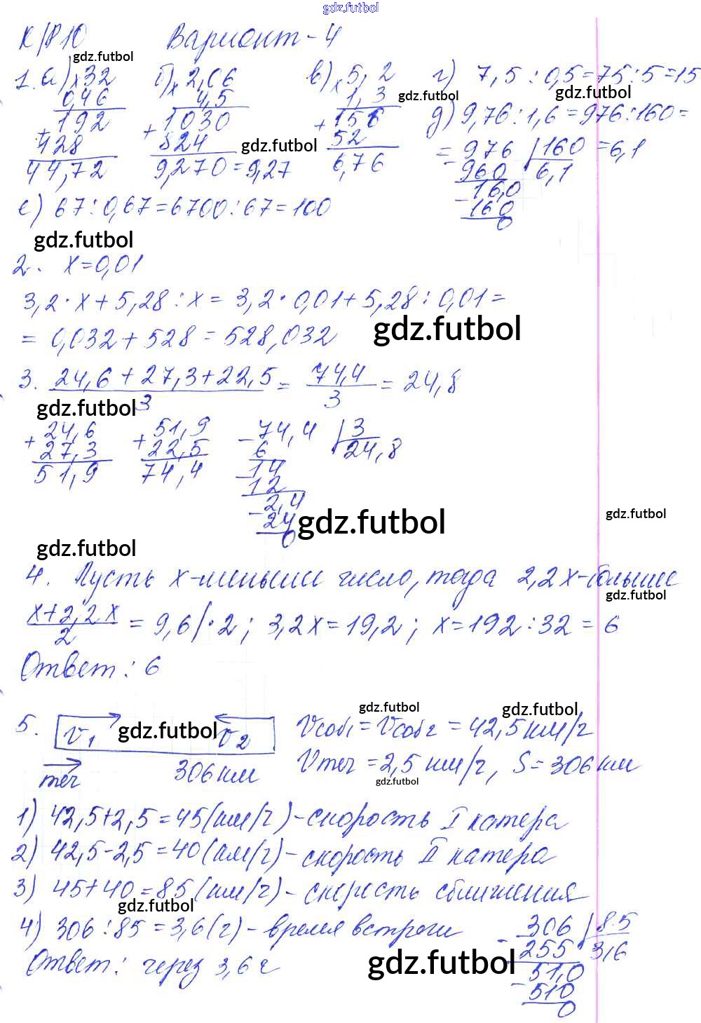 Готовые домашние задания по Математике за 5 класс Дудницын Контрольные работы УМК 2011 ФГОС - КР-10. Варианты 4
