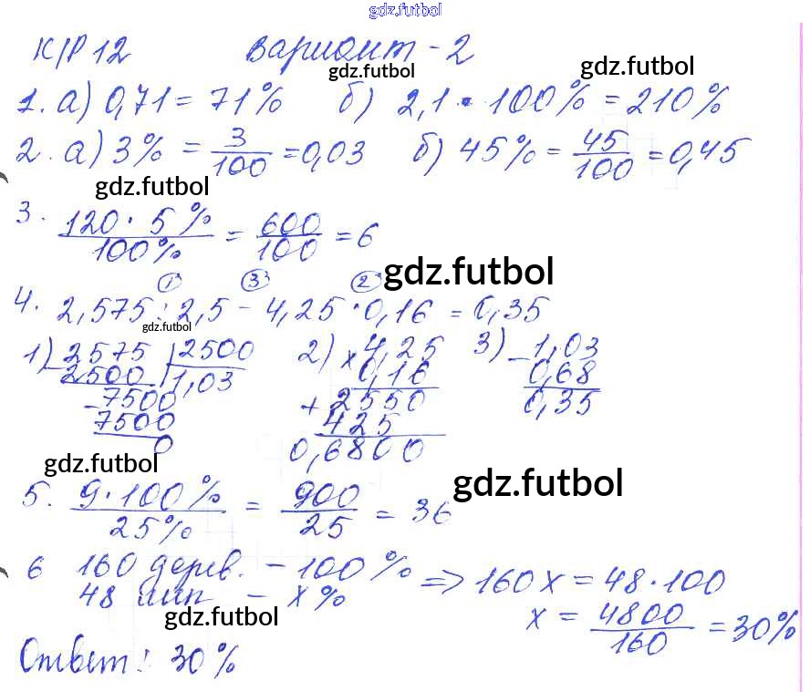 Готовые домашние задания по Математике за 5 класс Дудницын Контрольные работы УМК 2011 ФГОС - КР-12. Варианты 2