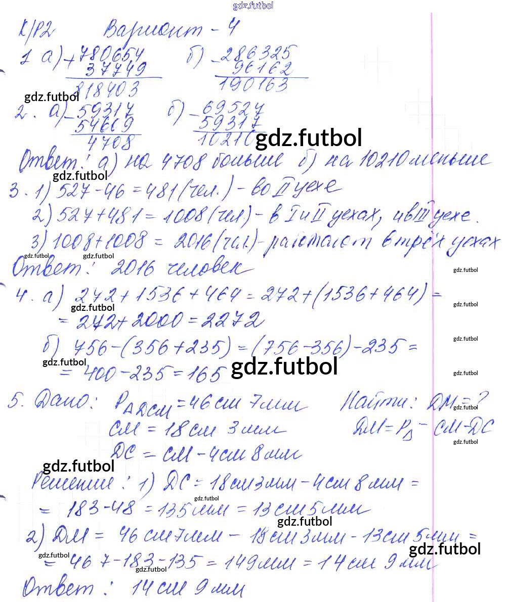 Готовые домашние задания по Математике за 5 класс Дудницын Контрольные работы УМК 2011 ФГОС - КР-2. Варианты 4