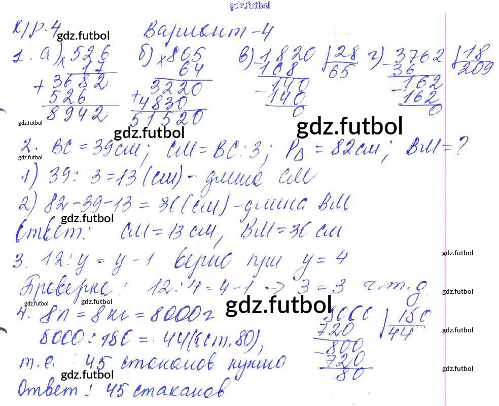 Готовые домашние задания по Математике за 5 класс Дудницын Контрольные работы УМК 2011 ФГОС - КР-4. Варианты 4