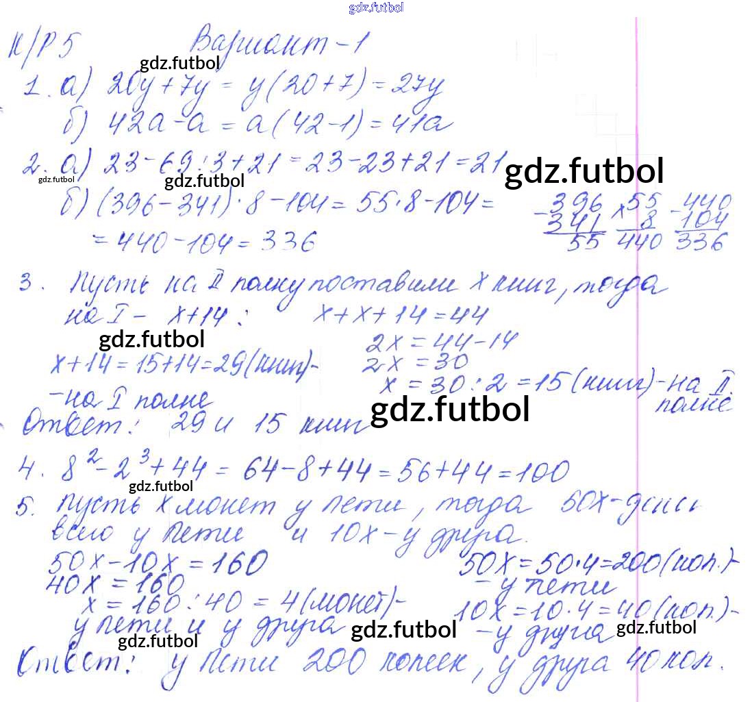 Готовые домашние задания по Математике за 5 класс Дудницын Контрольные работы УМК 2011 ФГОС - КР-5. Варианты 1
