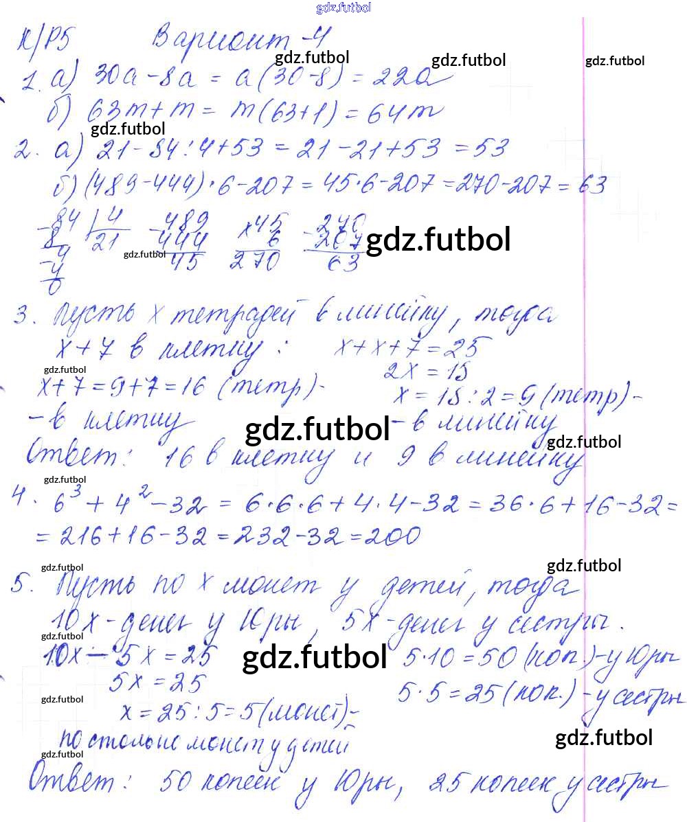 Готовые домашние задания по Математике за 5 класс Дудницын Контрольные работы УМК 2011 ФГОС - КР-5. Варианты 4
