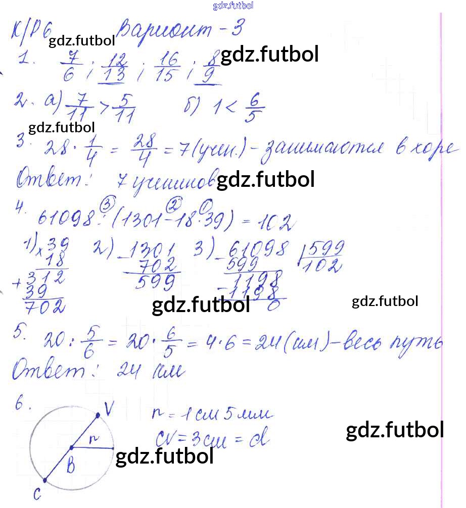 Готовые домашние задания по Математике за 5 класс Дудницын Контрольные работы УМК 2011 ФГОС - КР-6. Варианты 3