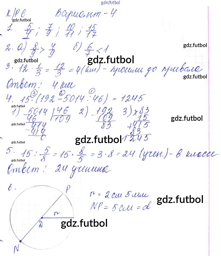 Готовые домашние задания по Математике за 5 класс Дудницын Контрольные работы УМК 2011 ФГОС - КР-6. Варианты 4
