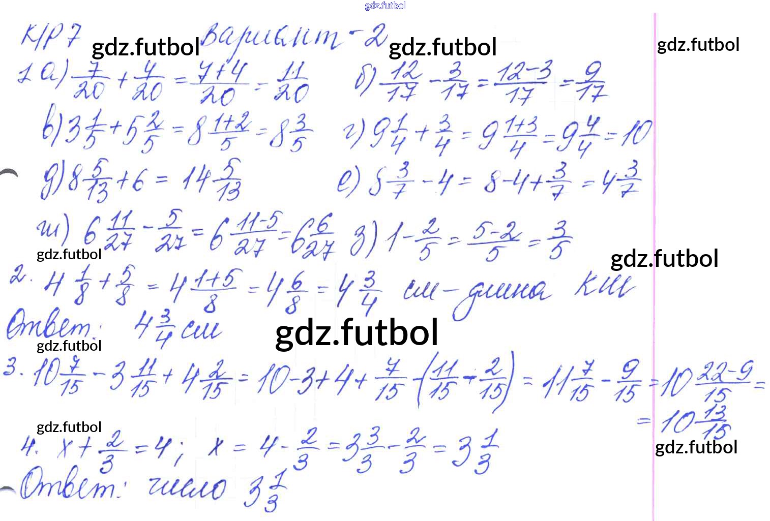 Готовые домашние задания по Математике за 5 класс Дудницын Контрольные работы УМК 2011 ФГОС - КР-7. Варианты 2