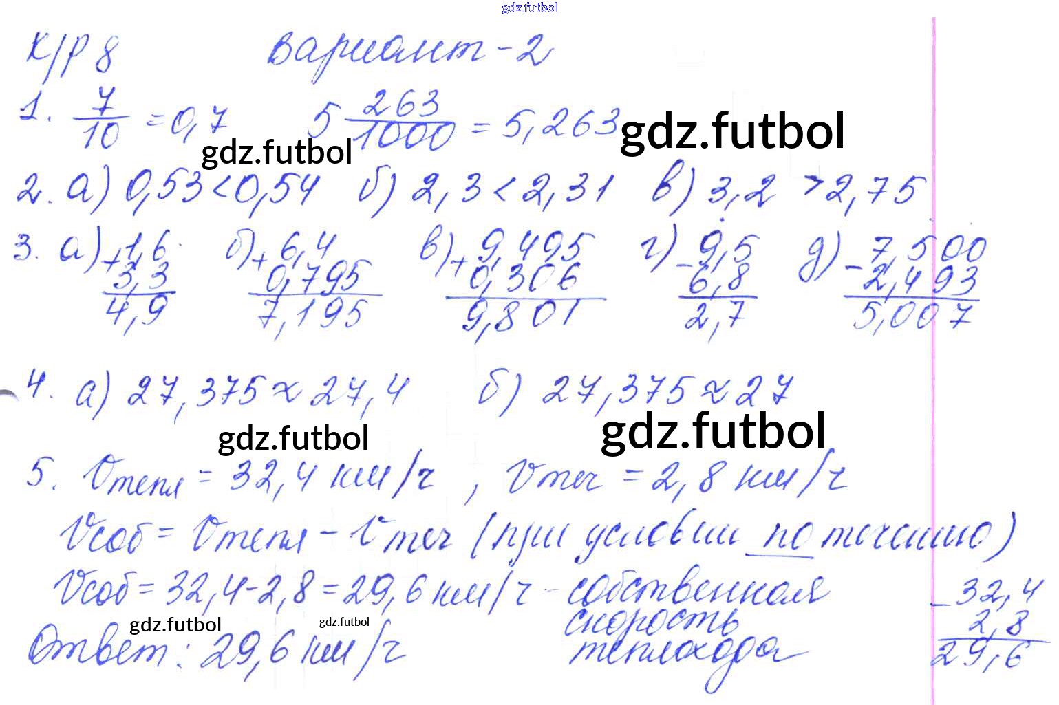 Готовые домашние задания по Математике за 5 класс Дудницын Контрольные работы УМК 2011 ФГОС - КР-8. Варианты 2