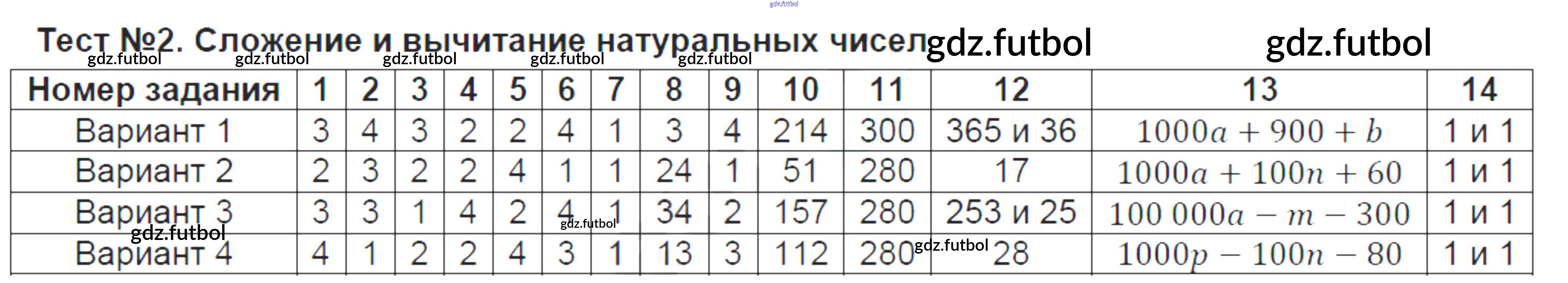 Готовые домашние задания по Математике за 5 класс Ерина Тесты УМК 2017 ФГОС - Тесты Тест №2. Сложение и вычитание натуральных чисел