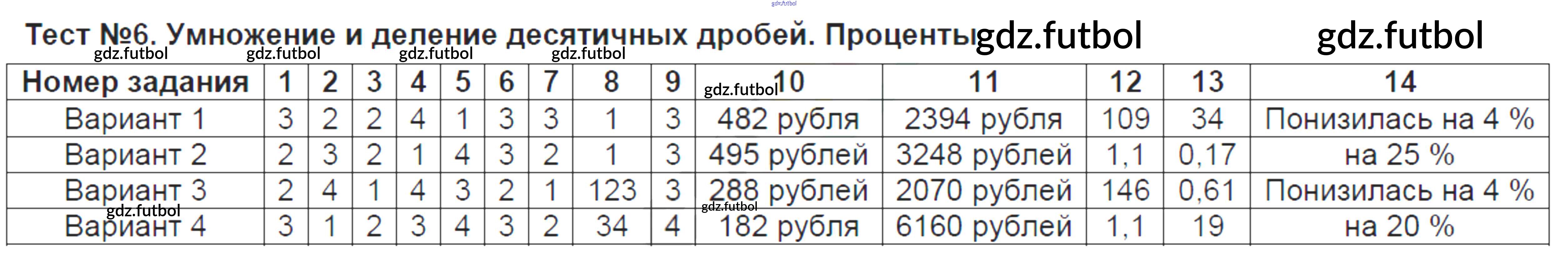 Готовые домашние задания по Математике за 5 класс Ерина Тесты УМК 2017 ФГОС - Тесты Тест №6. Умножение и деление десятичных дробей. Проценты