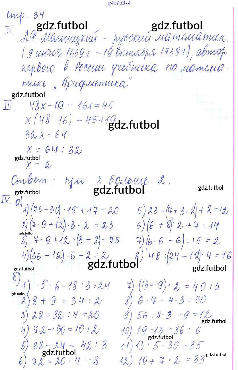 Готовые домашние задания по Математике за 5 класс Ерина Рабочая тетрадь УМК 2016 ФГОС - Часть 1. Страницы 34