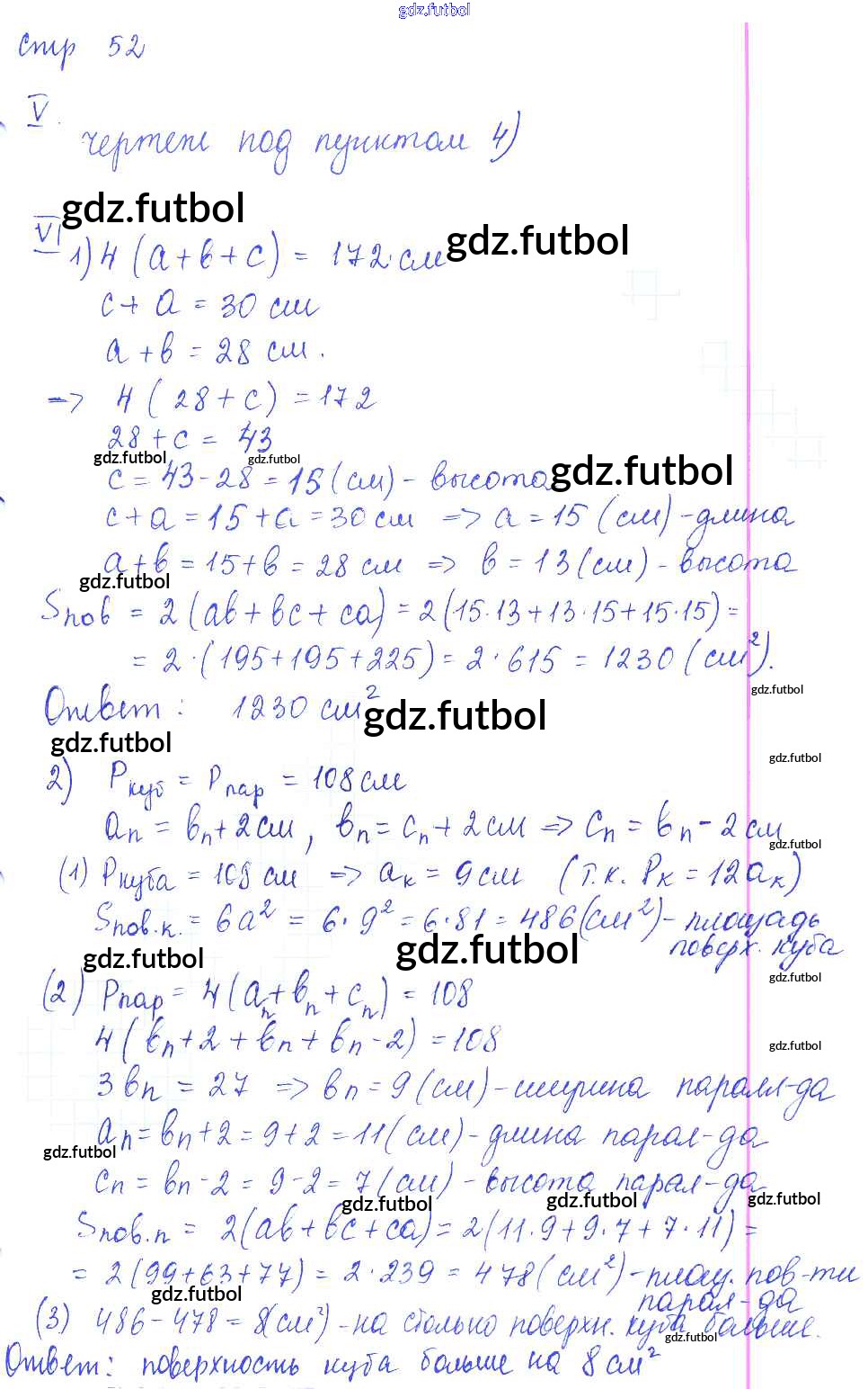 Готовые домашние задания по Математике за 5 класс Ерина Рабочая тетрадь УМК 2016 ФГОС - Часть 1. Страницы 52