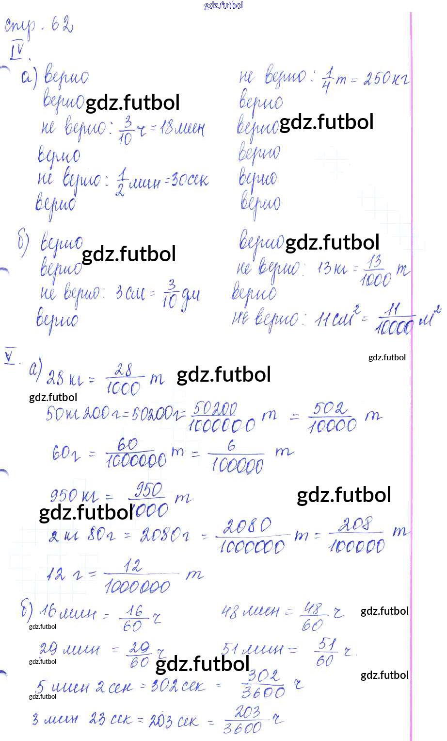 Готовые домашние задания по Математике за 5 класс Ерина Рабочая тетрадь УМК 2016 ФГОС - Часть 1. Страницы 62
