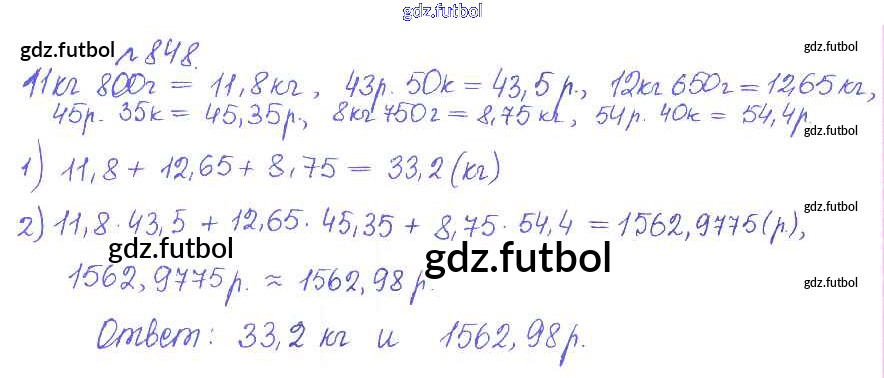 Готовые домашние задания по Математике за 5 класс Гамбарин Сборник задач и упражнений 2011 ФГОС - Задачи 848
