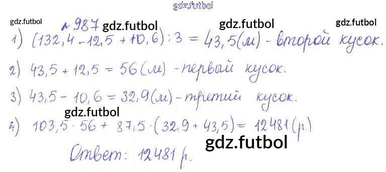 Готовые домашние задания по Математике за 5 класс Гамбарин Сборник задач и упражнений 2011 ФГОС - Задачи 987
