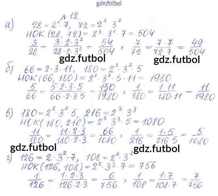 Готовые домашние задания по Математике за 5 класс Кузнецова Дидактические материалы Академический школьный учебник 2014 ФГОС - О-29. Приведение дробей к общему знаменателю 12