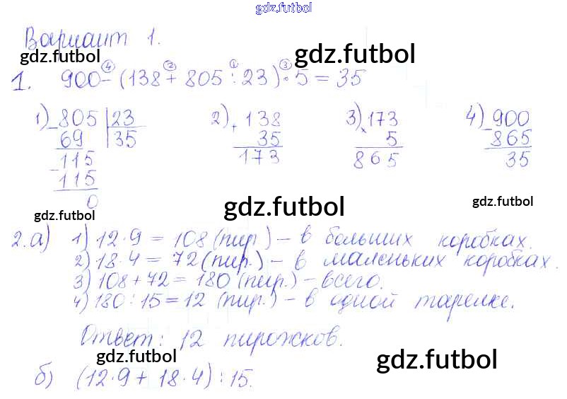 Готовые домашние задания по Математике за 5 класс Кузнецова Дидактические материалы Академический школьный учебник 2014 ФГОС - ПР №11. Порядок действий в вычислениях вариант-1