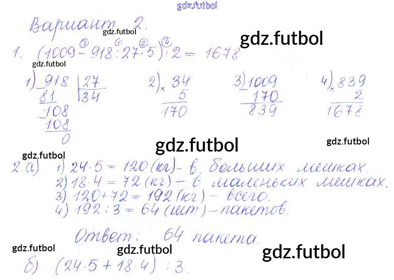 Готовые домашние задания по Математике за 5 класс Кузнецова Дидактические материалы Академический школьный учебник 2014 ФГОС - ПР №11. Порядок действий в вычислениях вариант-2