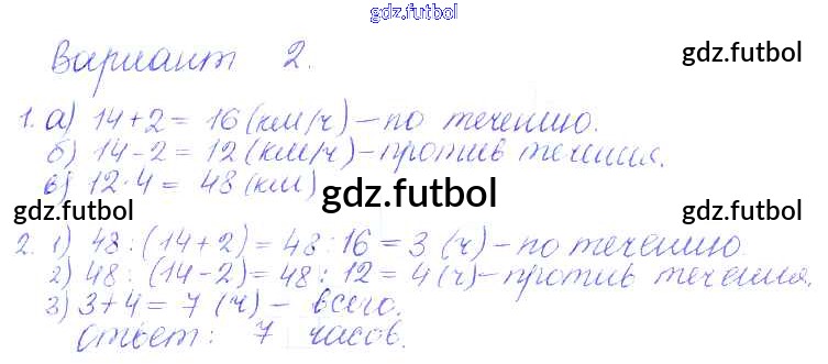 Готовые домашние задания по Математике за 5 класс Кузнецова Дидактические материалы Академический школьный учебник 2014 ФГОС - ПР №14. Задачи на движение по реке вариант-2