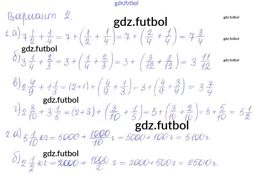 Готовые домашние задания по Математике за 5 класс Кузнецова Дидактические материалы Академический школьный учебник 2014 ФГОС - ПР №33. Сложение смешанных дробей вариант-2
